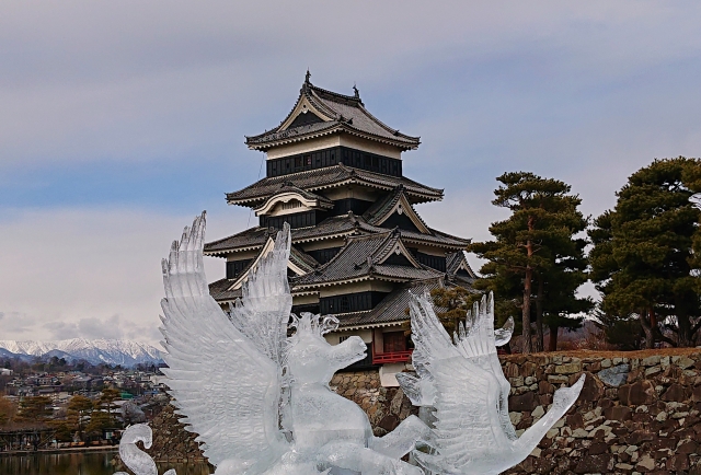 松本城でも毎年一月に国宝松本城氷彫フェスティバルがテーマを決めて開催されているそうです。